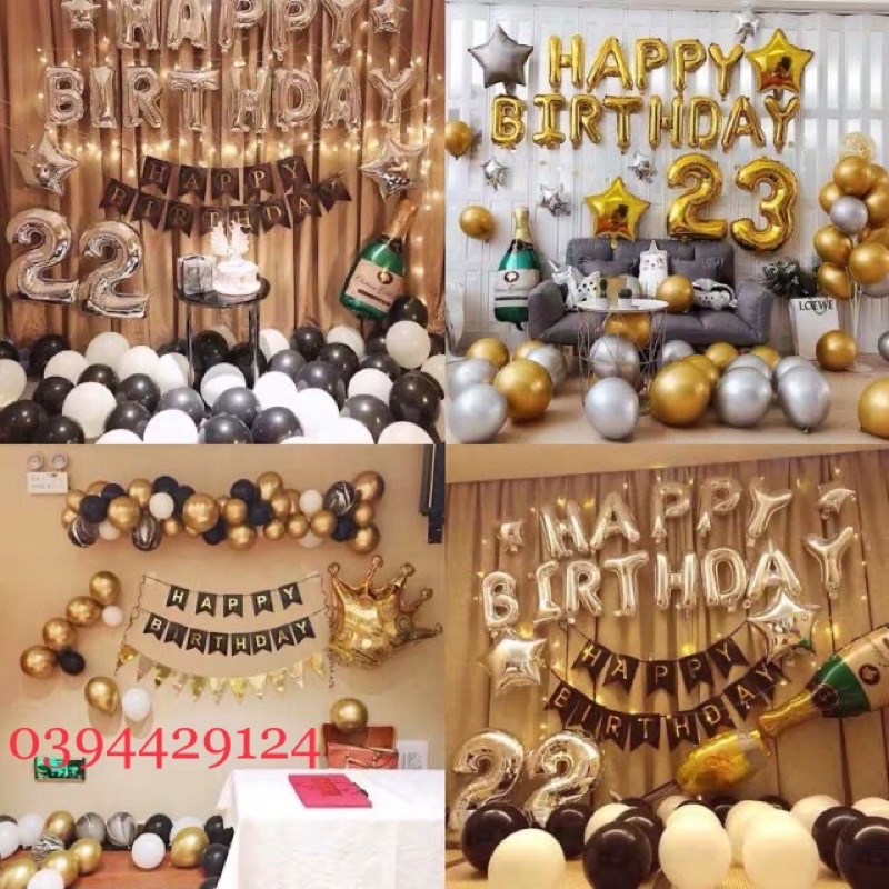 Set Bóng Sinh Nhật Happy Birthday Kèm Đèn Led Và Số Tuổi Nhiều Mẫu